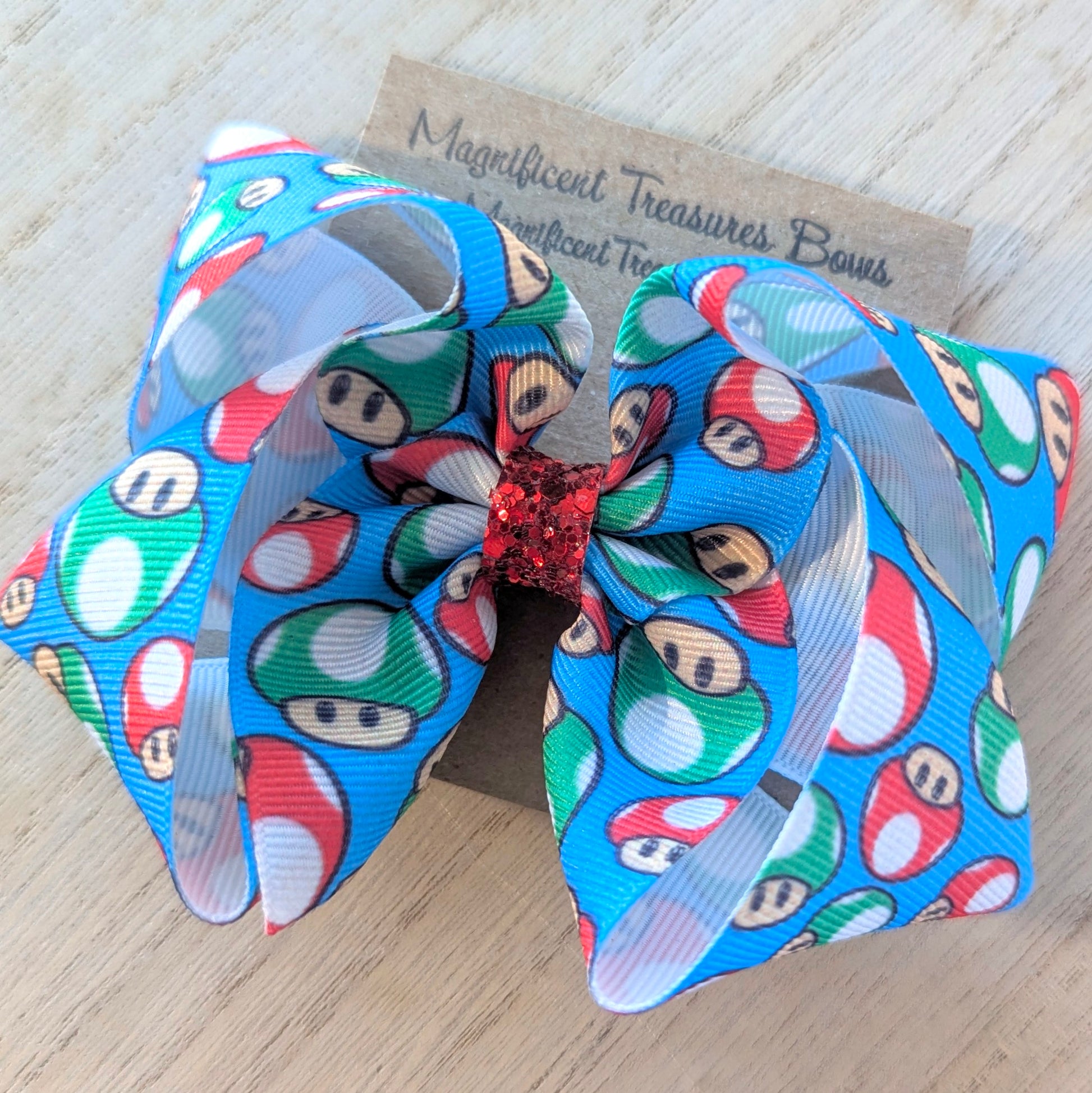 4" Mario Mushroom Ribbon Hair Bow