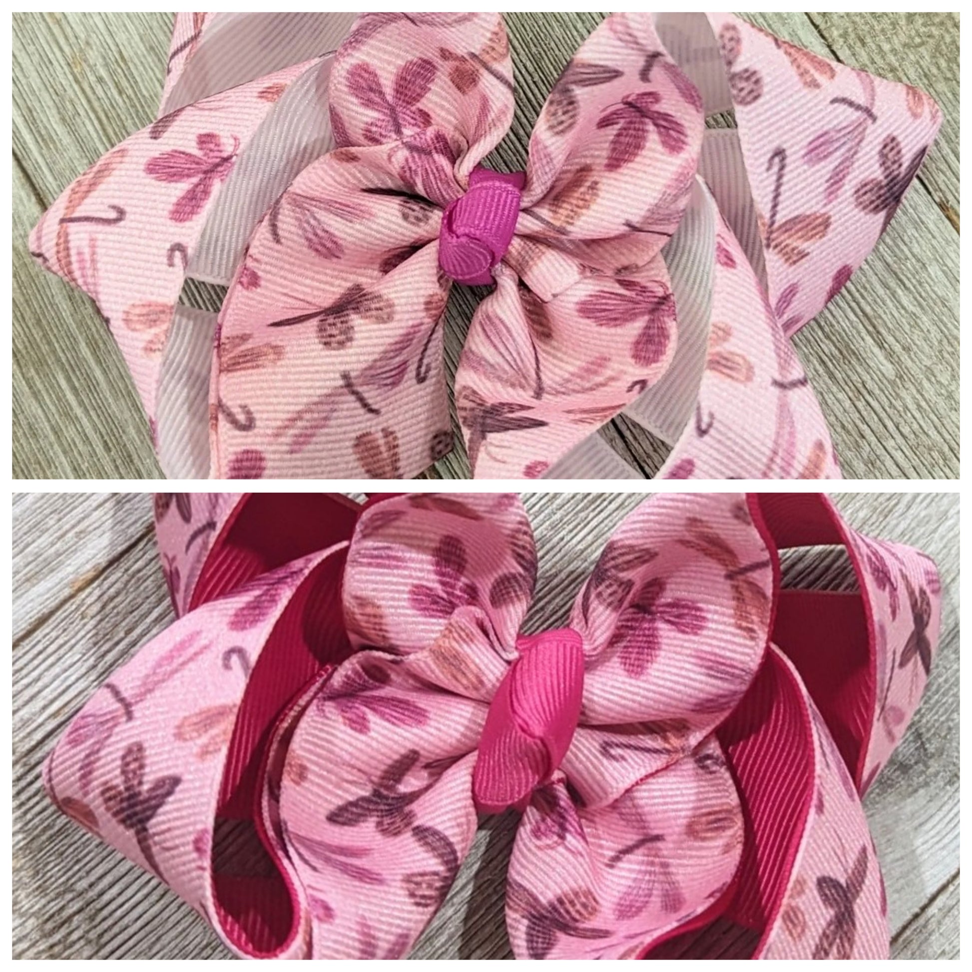 4" Pink Dragonfly and Butterfly Ribbon Hair Bow