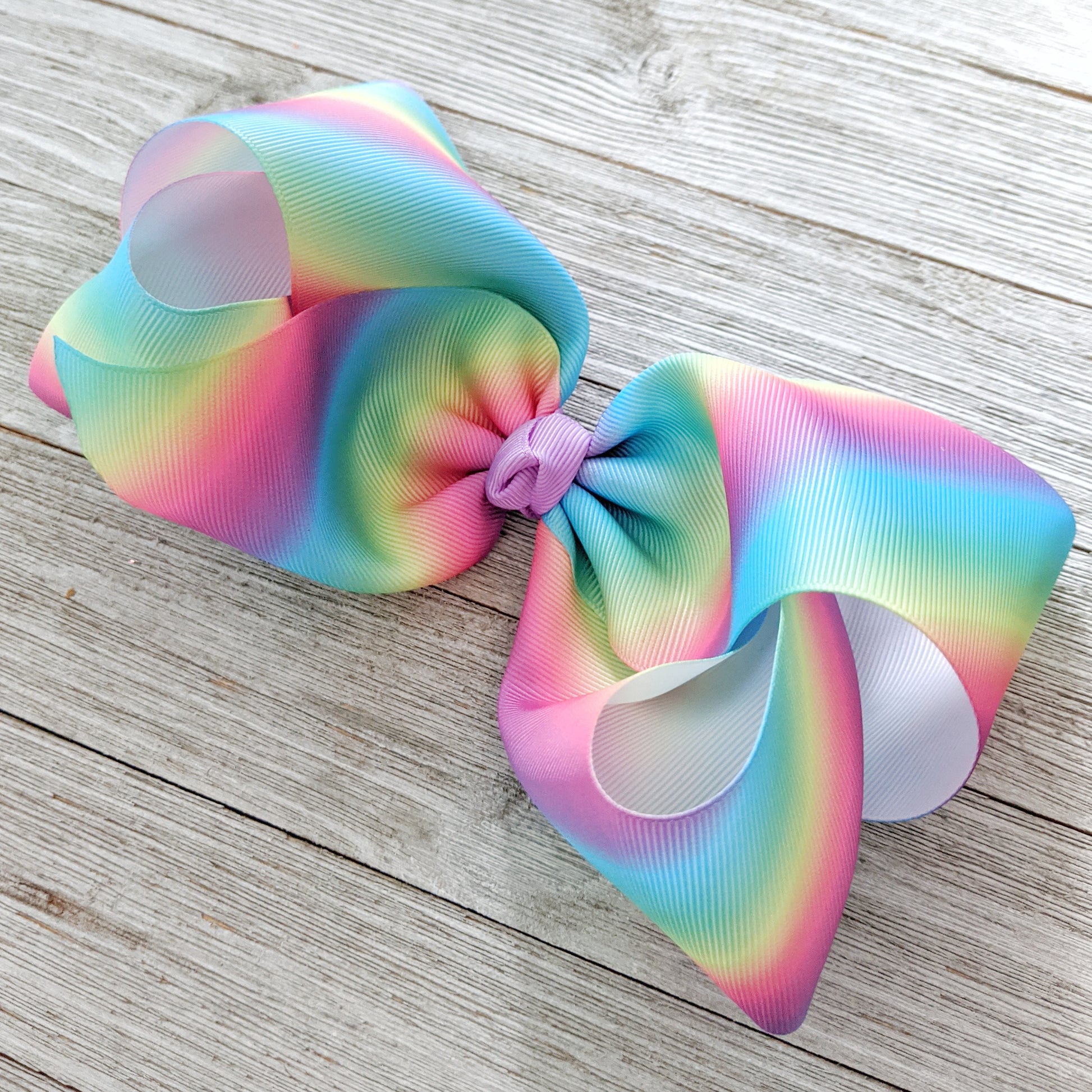 7-8" Pastel Rainbow Stripes Ribbon Hair Bow