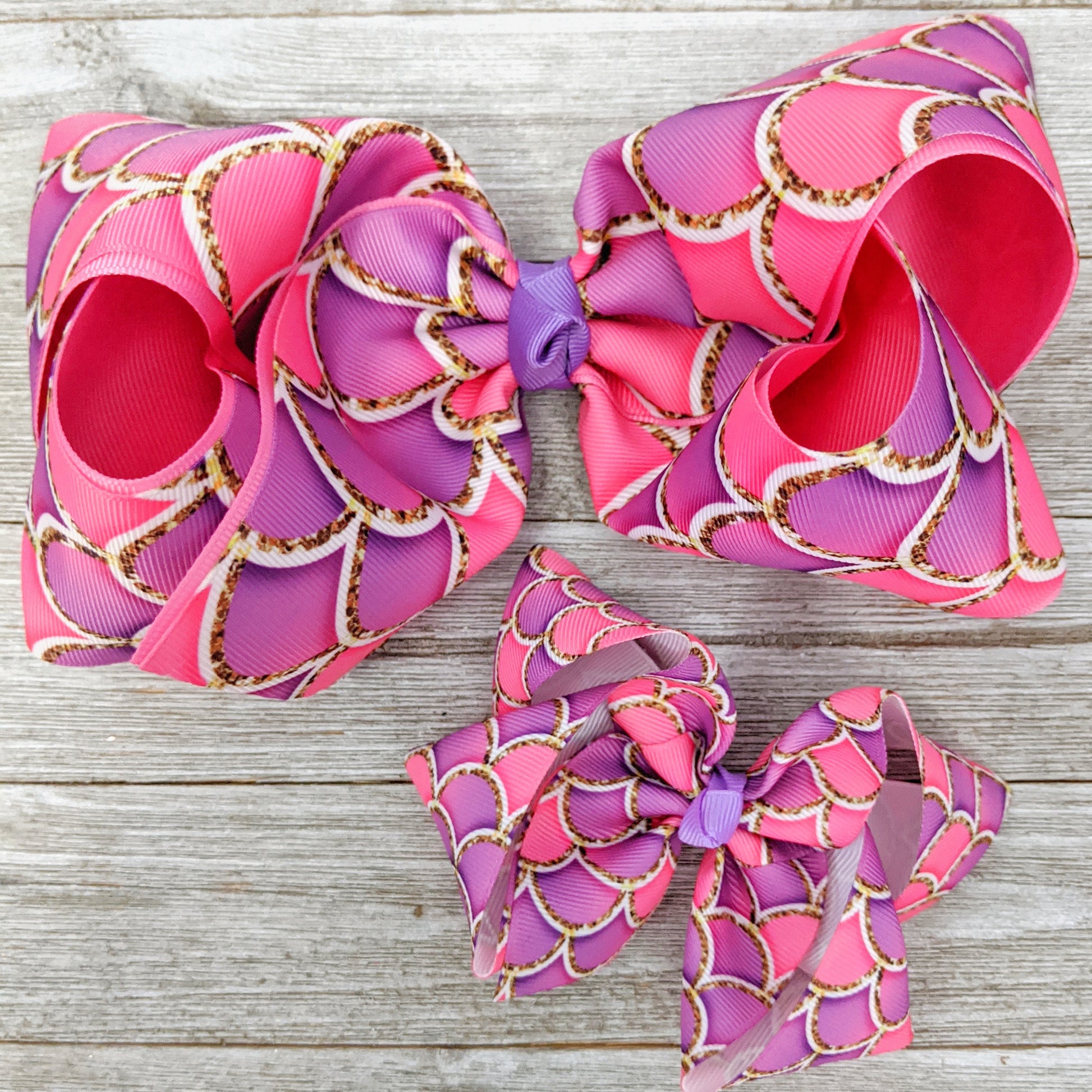 7-8" Pink and Purple Mermaid Scale Ribbon Hair Bow