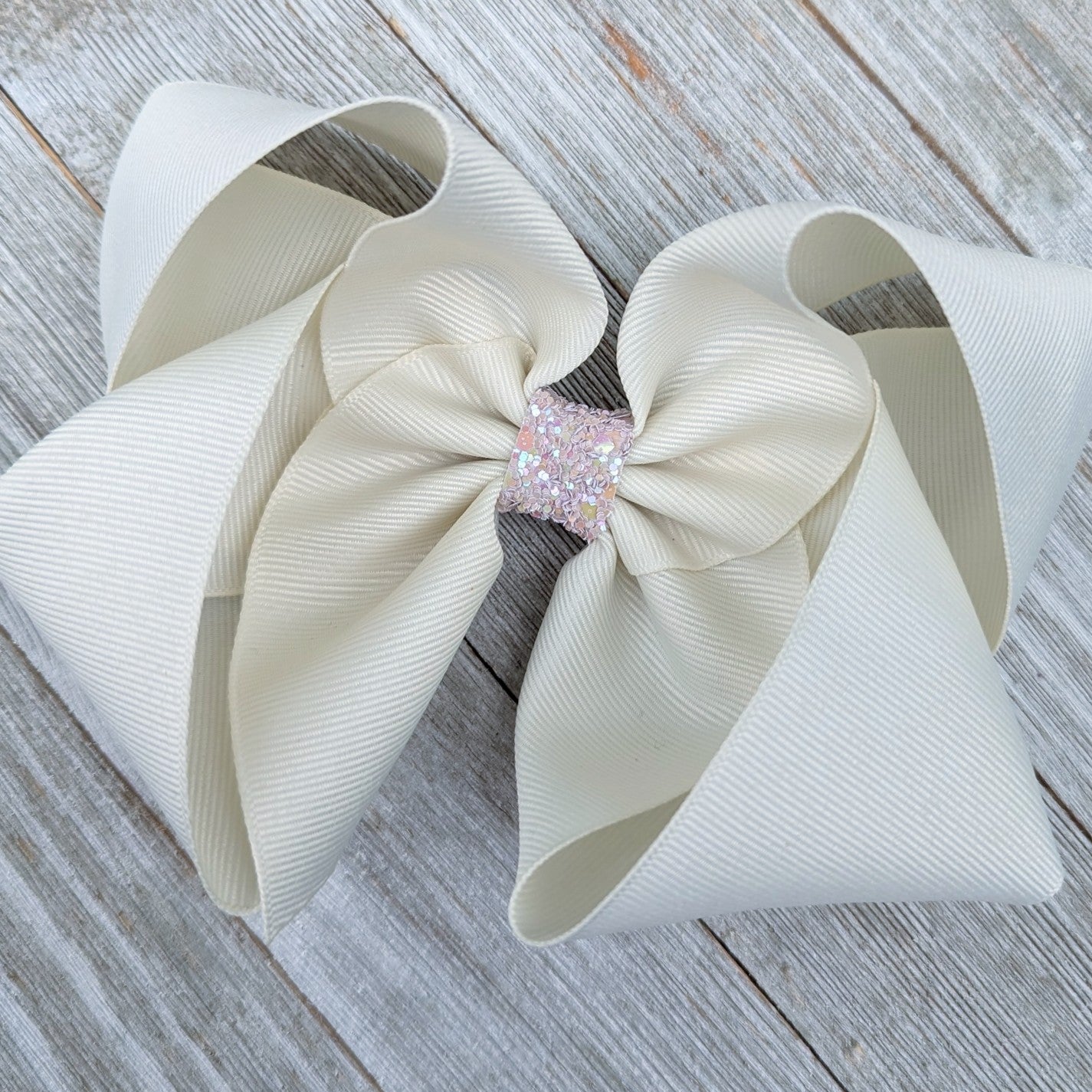 CLEARANCE 6" Ivory Color Ribbon Boutique Hair Bow