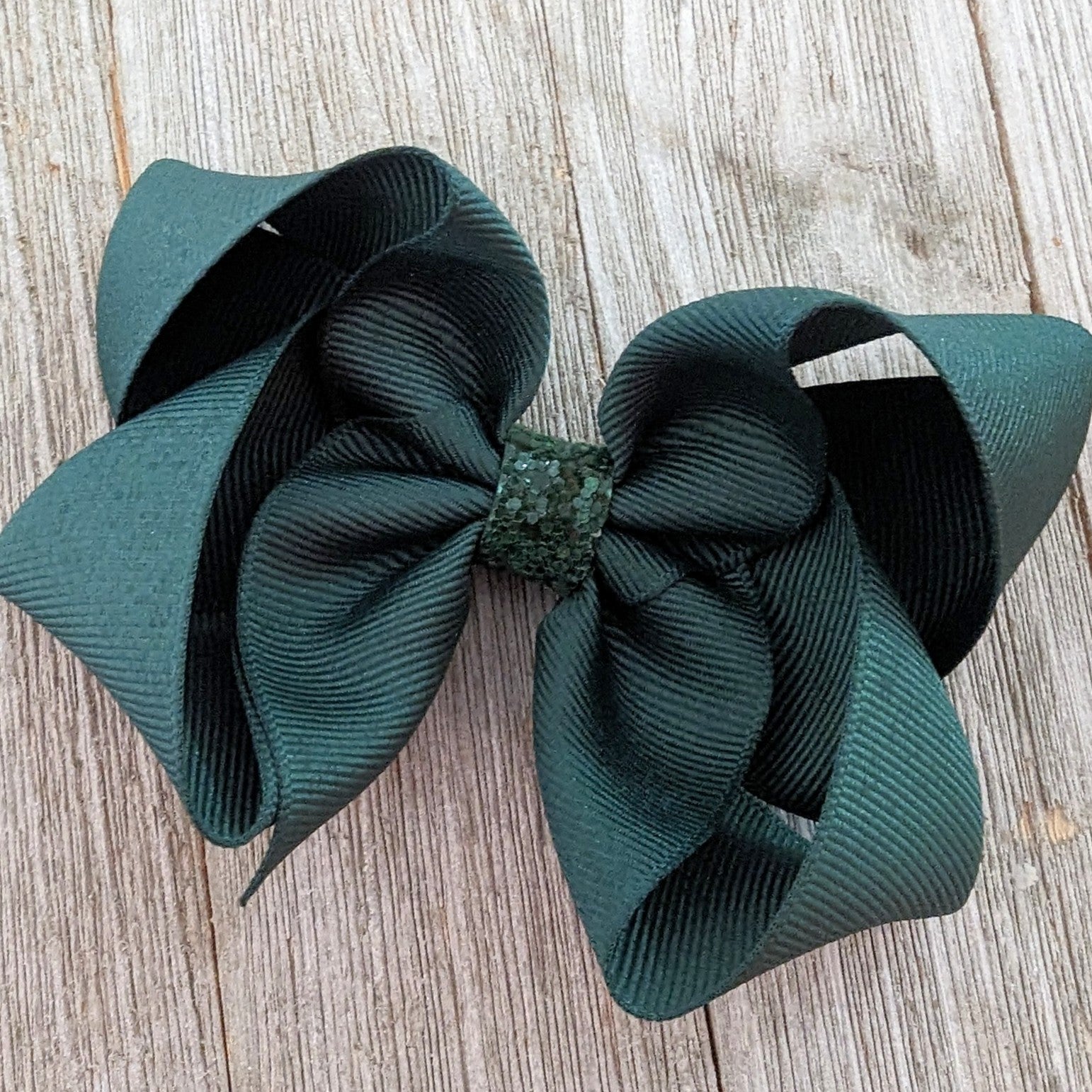 CLEARANCE 4" Forest Green Color Boutique Ribbon Hair Bow