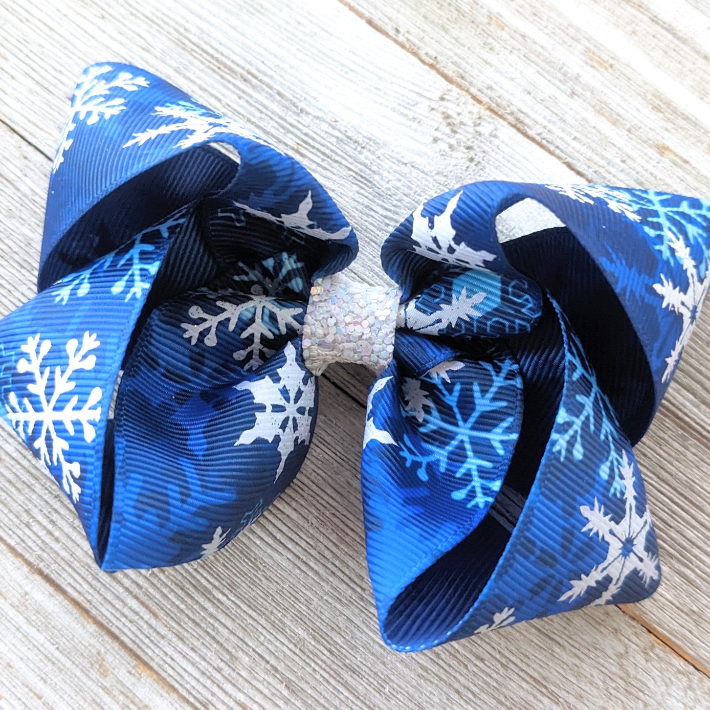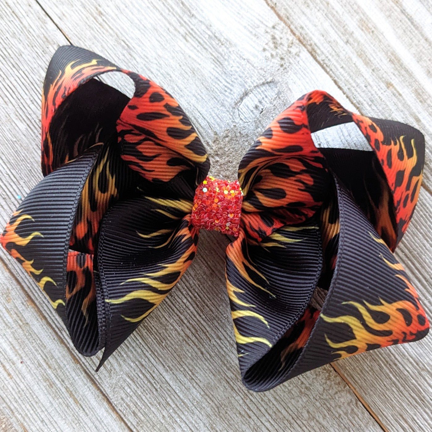 Heat Miser Snow Miser Christmas 4" Hair Bow, Fire, Snow
