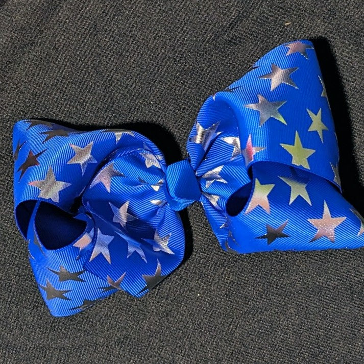 Jumbo 8 Inch Blue and Silver Star Hair Bow