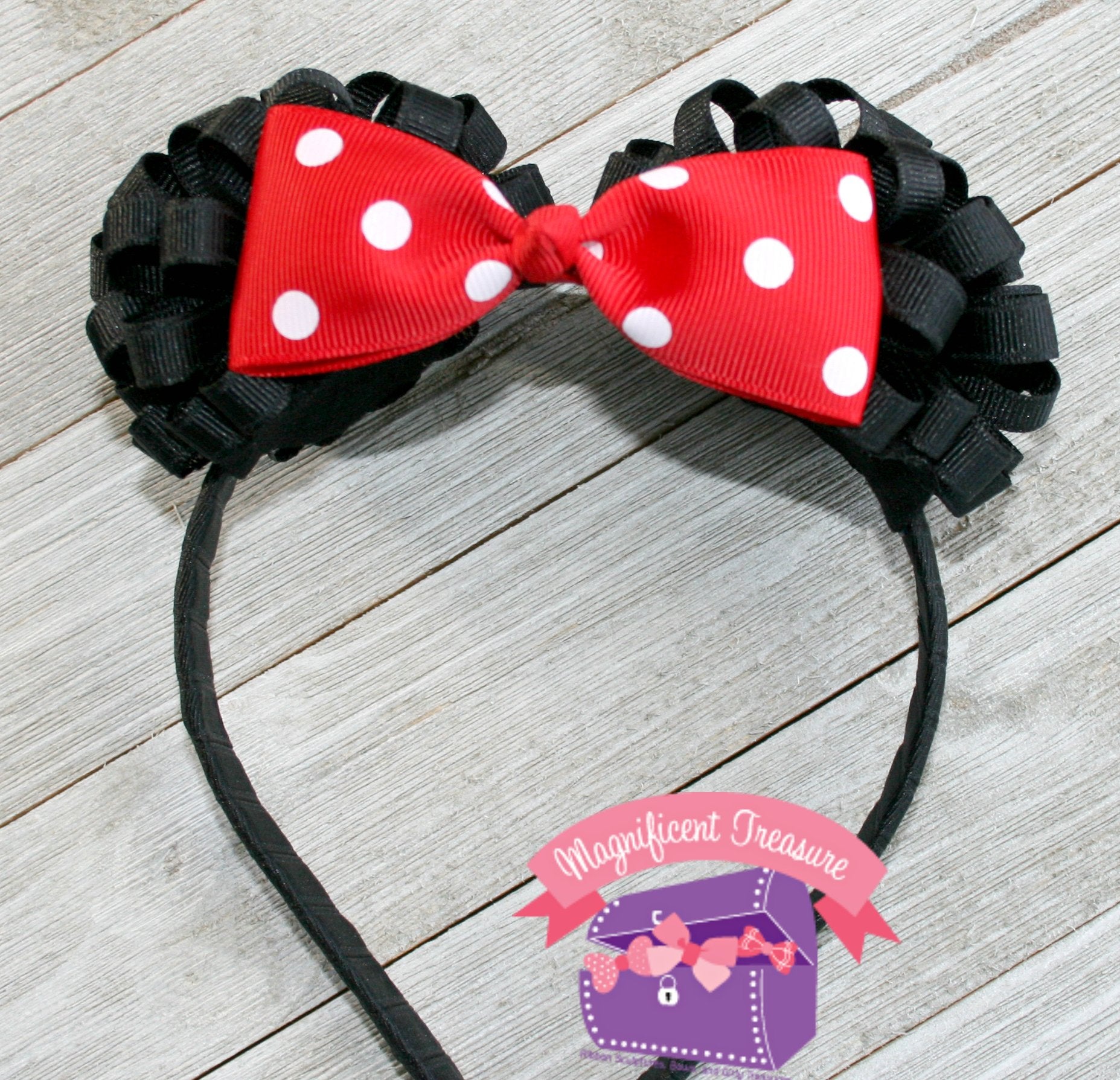 Minnie Mouse Ears Headband with Ribbon Puff Ears
